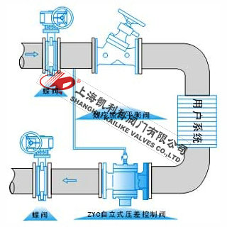 4、便流量的水平之平、幹管入口處以及在安裝溫控閥、調節閥等的動态系統的支、幹管入口處、安裝自立式壓差控制閥可使被控系統、回水管之間的壓差保持恒定值。